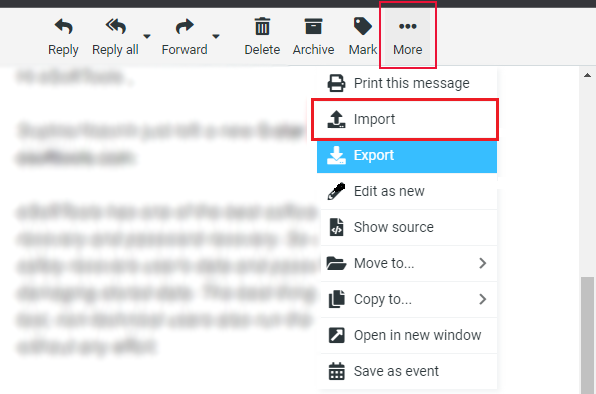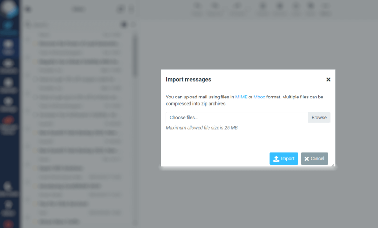 - Finally, hit Import to upload the file and add your Gmail emails to Roundcube.